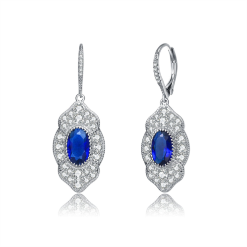[US] Genevive sterling silver sapphire cubic zirconia pave drop earrings
