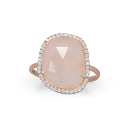 This 18k Rose Gold Plated Rose Quartz Oval Cz Ring is a stunning piece of jewelry. Crafted from 18k Rose Gold Plated Sterling Silver, the ring features a 12mm x 14mm Rose Quartz stone with 6.75 carats of weight.