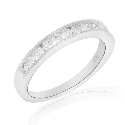 Lovely, elegant 0.44 cttw diamond wedding band in 14k white gold. The 12 sparkling diamonds are natural diamonds set in a channel setting. This ring is available in multiple sizes. Gift box is included with this bridal ring.