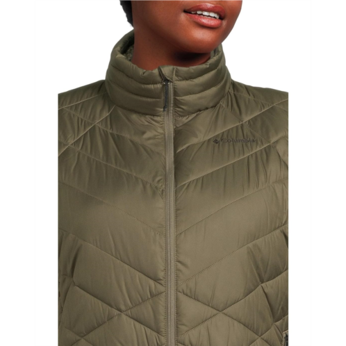 - The Columbia Plus Size Heavenly II Vest is a lightweight vest that features Omni-Heat thermal-reflective breathable lining that retains warmth using silver dots that reflect body heat, so you stay warm and comfortable as temps drop. With its two-way zippered front closure, it locks out the elements. This sleeveless vest is styled with a plush, fleece-lined collar for extra warmth and a droptail hem for extra coverage and protection. The Omni-Shield fabric of the vest repels moisture and resists stains to keep you clean and dry in damp, messy conditions. This zip-up vest is a great choice for your hiking and outdoor adventures.