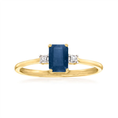 GENUINE 10KT GOLD .50 carat sapphire ring with diamond accents in 10kt yellow gold. Emerald-cut sapphire. Round diamond accents in white rhodium. Polished finish. 1/4 in. wide. Size 5.