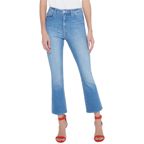 Introducing the L'AGENCE Mira High-Rise Crop Micro Boot in Seneca, a chic addition to your denim collection. This stylish pair of jeans features a zip fly with button closure, a comfortable inseam of approximately 27 inches, and a flattering 1.5-inch rise. Made in the USA, these jeans are crafted from a blend of 73% cotton, 26% lyocell, and 1% elastane. For best care, we recommend dry cleaning only. Elevate your look with this must-have piece from L'AGENCE.
