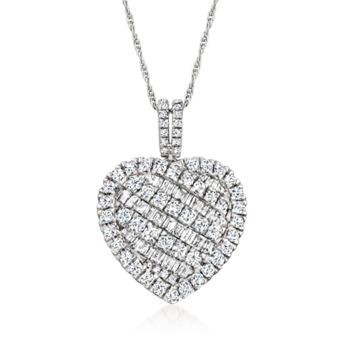 A top-rated jeweler since 1952, Ross-Simons travels the world to find high-quality styles at the best prices. You're sure to fall in love with our dazzling design. Fully decked out in 2.00 ct. t.w. tapered baguette and round diamonds, this sterling silver heart pendant necklace is ready to brighten any look. Suspends from a rope chain. Springring clasp, diamond heart pendant necklace. Necklace drop length - 1 1/8 inches long. Necklace drop width - 3/4 inch wide. Each Ross-Simons item arrives in a fine jewelry presentation box. Shop Ross-Simons jewelry risk-free as all items include a 30-day, 100% money-back guarantee.