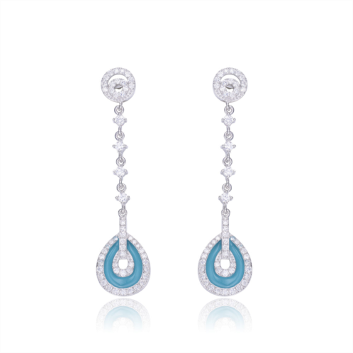 Stylish Sterling Silver Cubic Zirconia Drop Earrings. These pear drop earrings are decorated with shimmering clear round-cut cubic zirconia stones and blue inlay. Crafted of Sterling Silver with Rhodium Plating and secure with a butterfly closure. These make a great gift as well.