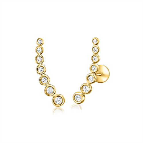 A trusted jeweler in 1952, Ross-Simons is dedicated to quality and value.RS Pure. Modern designs that complete your outfit and complement your personality.Our dainty .15 ct. t.w. round diamond curved ear climbers will add perfect sparkle to your everyday outfits. Crafted in 14kt yellow gold, this simple pushpin style features a flat back that won't poke or jab while you're taking a quick nap or getting a full night of beauty sleep. Insert the backing first into a pierced ear, then slide the front post inside to secure. Designed for 24/7 wear, these easy earrings are ideal for an active lifestyle and can be worn without worry during workouts, travel and all of your daily activities. Suitable for cartilage piercings. Diamond curved ear climbers. Each Ross-Simons item arrives in a fine jewelry presentation box. Shop Ross-Simons jewelry risk-free as all items include a 30-day, 100% money-back guarantee.