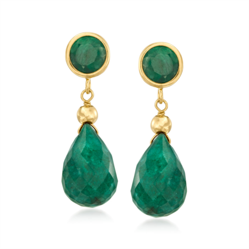 A top-rated jeweler since 1952, Ross-Simons travels the world to find high-quality styles at the best prices. Eye-popping green comes to life as 10.00 ct. t.w. emerald teardrop briolettes suspend gently from 2.00 ct. t.w. emerald rounds on this pair of 14kt yellow gold drop earrings. Hanging length is 7/8'. Post/clutch, emerald drop earrings. Each Ross-Simons item arrives in a fine jewelry presentation box. Shop Ross-Simons jewelry risk-free as all items include a 30-day, 100% money-back guarantee.