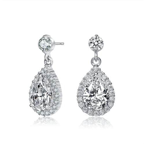 [US] Genevive sterling silver cubic zirconia halo teardrop earrings