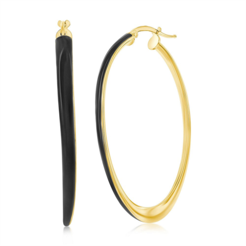 Sterling Siver, Black Enamel Oval Hoop Earrings - Gold Plated