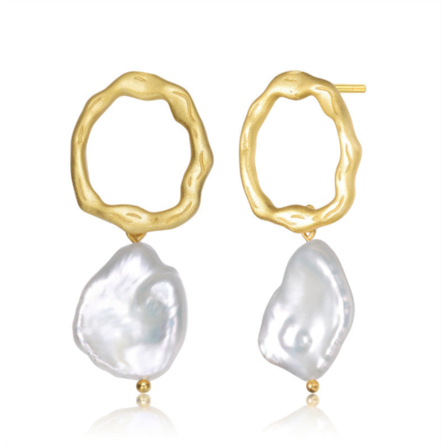[US] Genevive sterling silver 14k gold plated with genuine freshwater pearl drop round earrings