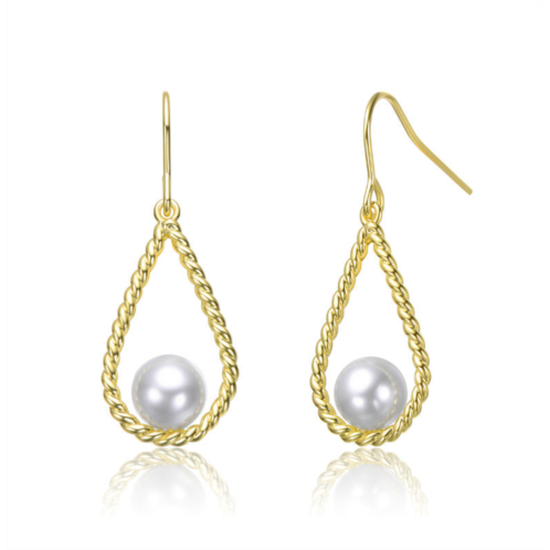 [US] Rachel Glauber 14k gold plated with white pearl twisted teardrop dangle earrings