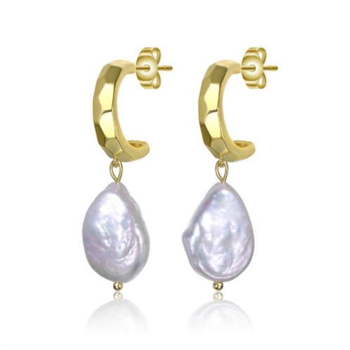 [US] Genevive sterling silver 14k gold plated with irregular freshwater pearl dangle earrings