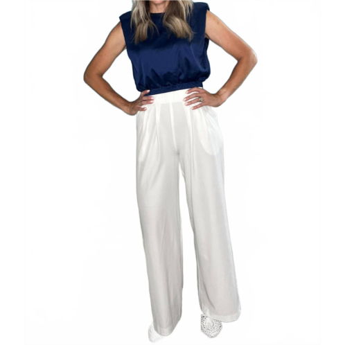 Introducing the Effortless High Waist Wide Leg Pants by GLAM, a chic addition to your summer wardrobe in crisp white. These women's high-rise pants are crafted from a comfortable blend of 95% Polyester and 5% Spandex, designed for a relaxed fit. With a versatile wide-leg silhouette and practical pockets, they're perfect for beach days and boho chic styles. Model is 5'11' and wearing size small.
