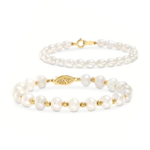 Ross-Simons travels the world to find beautiful, high-quality styles at the best prices. This 4-7mm cultured pearl bracelet set of two is an adorable gift for any mother-daughter duo! Featuring a larger size for mom and smaller size for daughter, this classic pair is a sweet way to honor their unbreakable bond. Set in 14kt yellow gold. Child's bracelet features a fishhook clasp. Springring clasp, mother and daughter bracelet set. Each Ross-Simons item arrives in a fine jewelry presentation box. Shop Ross-Simons jewelry risk-free as all items include a 30-day, 100% money-back guarantee.