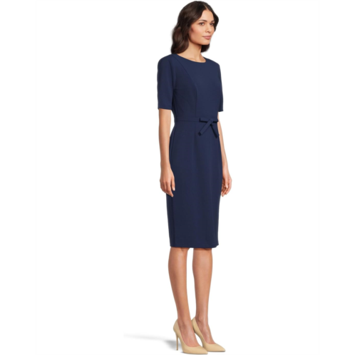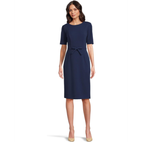 - The Adrianna Papell Mini Bow Front Sheath Dress uses crisp crepe fabric to create its clean, elegant lines. Its elbow-length sleeves, a crew neckline, and a knee-length hem keep the design demure, with princess seams and a zippered back closure ensuring a fitted silhouette. A cute bow at the center waistband adds the perfect finishing touch. If you want a moment of vintage glamor in your work and weekend wardrobe, this midi dress is the style for you.