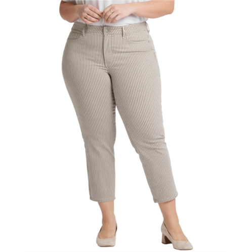 Elevate your denim game with the NYDJ Plus Marilyn Sandbar Stripe Ankle Crop Jean. This figure-flattering style features Lifttuck Technology for a smooth silhouette. The classic five-pocket design and zip fly with button closure add a timeless appeal. Made from a blend of cotton, polyester, and elastane, these jeans are both comfortable and stylish. With a cropped inseam of approximately 25 inches and a leg opening circumference of 17 inches, these jeans are perfect for any casual occasion. Don't forget to size down as this style tends to run large. Machine washable and imported, these jeans are a must-have addition to your wardrobe.