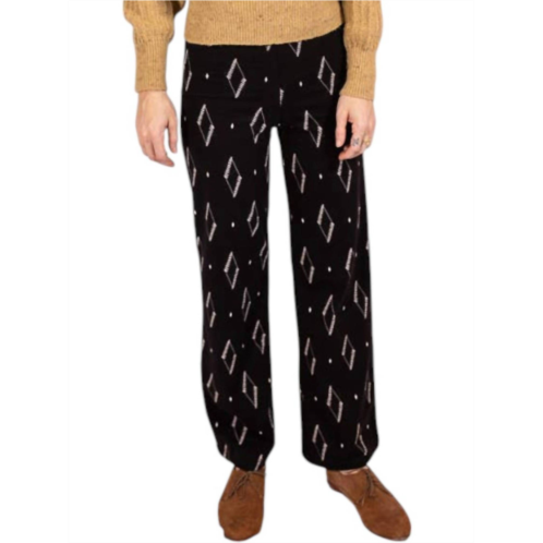 The trend report says boot-cut is in and that's exactly why we love this style. They are fit to perfection, flattering on any body type, and comfortable. They will be your go-to all season long.Perfect blend of comfort and style. Crafted from 95% certified organic cotton and 5% spandex. Feature a flattering bootcut leg that enhances your silhouette. Made with fair trade practices in India. Boast a waist adorned with Mobilon tape for a secure fit. Pull-on closure ensures ease of wear. High-rise waist complements its geometric Diamond Vine Black pattern.