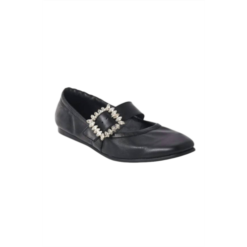 A preppy yet feminine take on the classic loafer.The ballet flats feature a thicker vamp strap with a bejeweled rhinestone buckle for added sparkle. They have leather uppers, a square toe, an adjustable vamp strap, and a flat sole. Slip-on style. Imported.