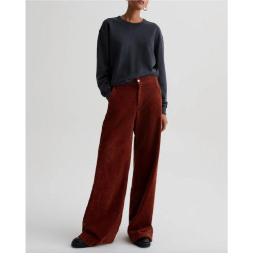 Pair these wide leg jeans with mules, slides or your favorite strappy sandals.The Tailored Deven wide-leg pants update our fan-favorite high-rise silhouette in buttery soft wide-wale stretch corduroy. Done in a rich cinnamon brown shade, the pair features a clean waistband without belt loops and a dramatic 34' inseam. A zip fly, slash front pockets, and welt back pockets finish the look.Witty Wide Wale, 8.1 Oz. 98% Cotton, 2% SpandexDetails & FitModel is wearing size 26. Front Rise - 12 1/4' Knee Opening - 22 3/4' Bottom Opening - 23 5/8' Inseam - 33'