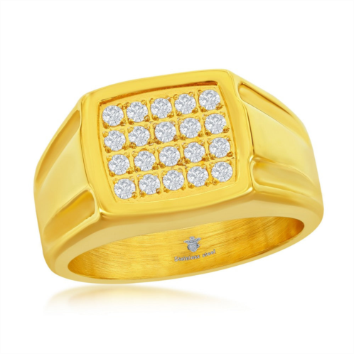 Stainless Steel Gold Square CZ Ring