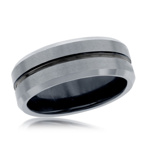 Matte & Polished Silver and Black Stripe Tungsten Ring