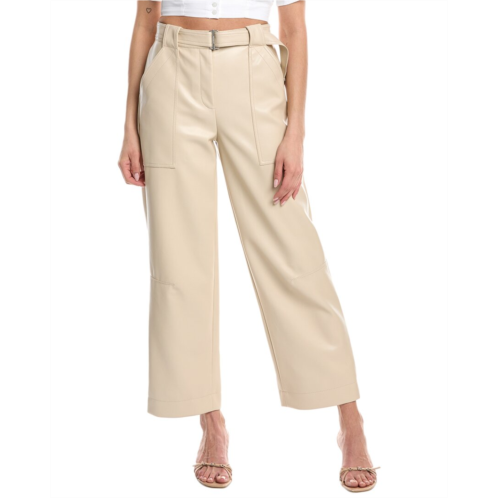 The SIMKHAI Jenny Belted Cropped Pant is a stylish and chic addition to your wardrobe. Made from a luxurious faux leather construction, these pants feature a belted elastic waist and four-pocket styling for a modern twist on a classic silhouette. The sand color adds a touch of sophistication, while the inseam of approximately 29 inches and 11.5 inch rise provide a flattering fit. Complete with zip fly with button and slide tab closures, these pants are as practical as they are fashionable. The 50% polyurethane and 50% polyester blend ensures durability, while the 100% polyester lining adds a luxurious touch. Perfect for a night out or a special occasion, the SIMKHAI Jenny Belted Cropped Pant is a must-have for any fashion-forward woman. Dry clean only. Imported. Model is 5'10 and is wearing a size 4. Measurements may vary slightly by size.
