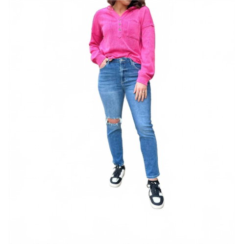 Tuck your favorite tee into these high-waist jeans for a more casual-cool feel.Introducing the Paisley High Rise Distressed Slim Skinny Jeans by Risen, designed for a flattering fit and a grunge-inspired edge. These jeans feature a high waist rise and a trendy skinny leg style, complete with a convenient button closure. They are crafted from a material blend of 91% Cotton, 6% Polyester, and 3% Spandex, ensuring comfort and flexibility. Perfect for spring vacations, the light wash and distressed details enhance their casual-chic appeal. Inseam measures 28.5' with a rise of 10.5', catering to the curated size guide of 1X to 3X for a range of curvy fits.