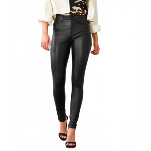 The perfect skinny pant for those stylish boots this season!This trend-right high-rise style sits comfortably above the hip, offering a slightly fitted silhouette through the hip and thigh for a flattering look. Designed with everyday comfort in mind, it features a sleek faux leather finish that adds a bold, modern edge to your wardrobe. With a 9 1/2' bottom opening, this piece combines style and versatility, making it a must-have for effortless statement dressing. Crafted from 100% polyurethane with a soft backing of 90% polyester and 10% cotton, it delivers both structure and ease.
