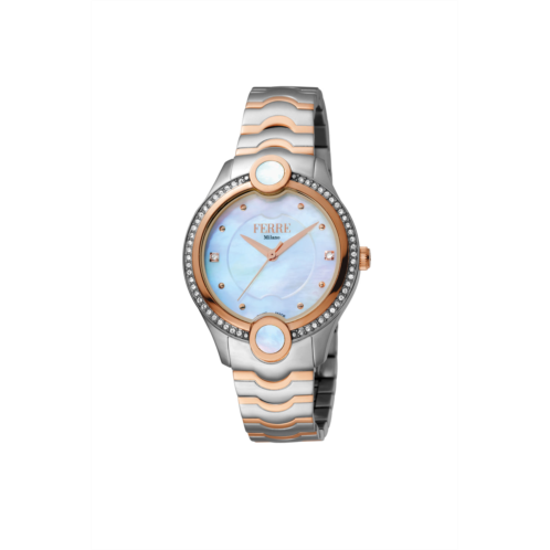[US] Ferre Milano womens white mop dial stainless steel watch