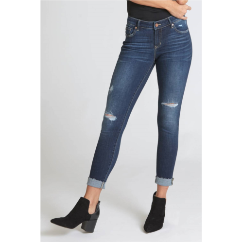 Everyone needs a good pair of skinny jeans and this is a style you'll keep reaching for no matter the season.These perfectly updated distressed skinny ankle jeans are great to wear with just about anything! The are mid-rise and the hem is made so you can cut it to your desired length, as well as roll them up or down!