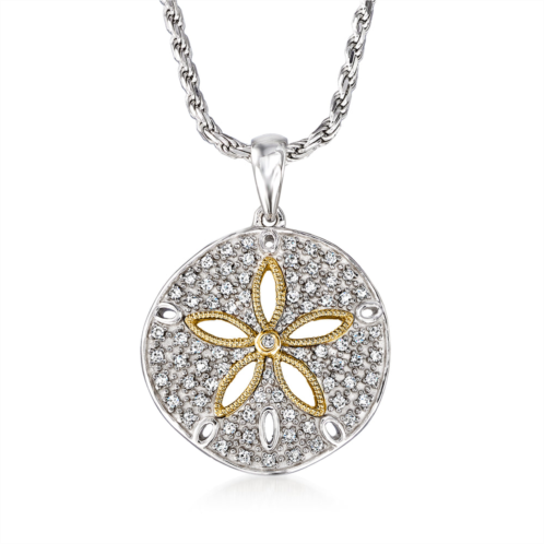 Ross-Simons travels the world to find beautiful, high-quality styles at the best prices. The perfect nautical motif for a sea lover. Sparkling with .20 ct. t.w. diamonds, this stunning sand dollar pendant necklace glows with a two-tone look. You can't go wrong wearing this charming piece that's set in polished sterling silver and 14kt yellow gold. Suspends from a sterling silver rope chain that adjusts from 22' to choker length by sliding the adjuster on the clasp. Lobster clasp, diamond sand dollar pendant necklace. Necklace drop length - 7/8 inch long. Necklace drop width - 5/8 inch wide. Each Ross-Simons item arrives in a fine jewelry presentation box. Shop Ross-Simons jewelry risk-free as all items include a 30-day, 100% money-back guarantee.
