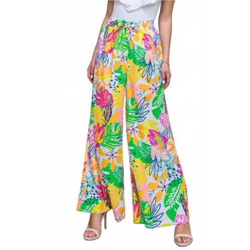 Indulge in effortless style with the Deco Jungle Drawstring Pant by FLYING TOMATO, designed for a relaxed summer vibe. These ivory wide-leg pants feature a floral pattern and an elasticized waist with a tie for a perfect fit. Composition - 100% Polyester. Closure - Pull on. Approximate Length - 43 inches. Ideal for a boho chic vacation look, these pants offer comfort without compromising style. Model is 5'8' and wearing a size small.