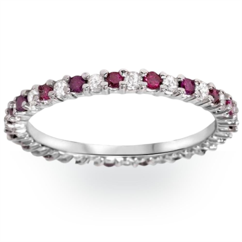 [US] Pompeii3 1/2ct ruby & diamond eternity wedding ring 14k white gold womens band