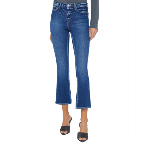 Introducing the L'AGENCE Tati Crop Micro Boot Jean in a stunning Desoto color/pattern. These stylish jeans feature an inseam of approximately 27 inches and a 9.75-inch rise, perfect for a flattering fit. The zip fly and button closure add a touch of classic denim style, while the 94% cotton, 5% polyester, and 1% spandex blend ensures comfort and flexibility. These jeans are dry clean only and proudly made in the USA. Elevate your look with these high-quality L'AGENCE jeans.