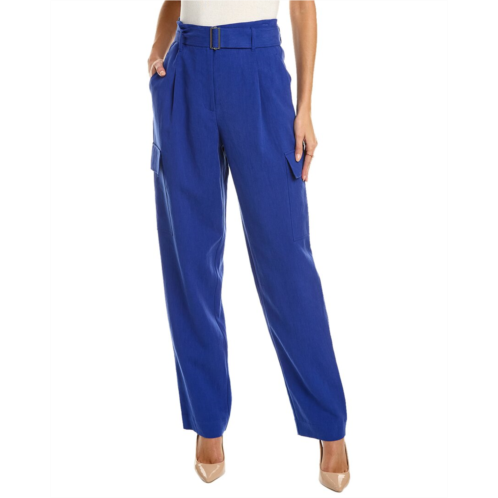 Introducing the Lafayette 148 New York Sadler Linen Cargo Pant, a stylish addition to your casual wardrobe. These cargo pants in lapis blue feature pleated legs, dual front angled pockets, and dual side cargo pockets for added functionality and style. With an inseam of approximately 33 inches and a 13-inch rise, these pants offer a comfortable and flattering fit. The zip fly with button and slide tab closure adds a touch of sophistication to this casual piece. Made from 100% linen, these pants should be dry cleaned only. Imported and inspired by New York City, Lafayette 148 New York designs clothing crafted for confidence and comfort. Elevate your casual look with these chic cargo pants from Lafayette 148 New York.