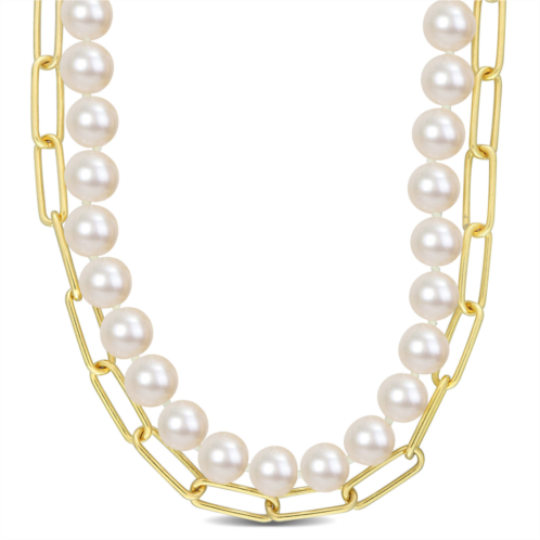 [US] Mimi & Max 7-7.5 mm cultured freshwater pearl and 5 mm link chain layered necklace in 18k gold plated sterling silver