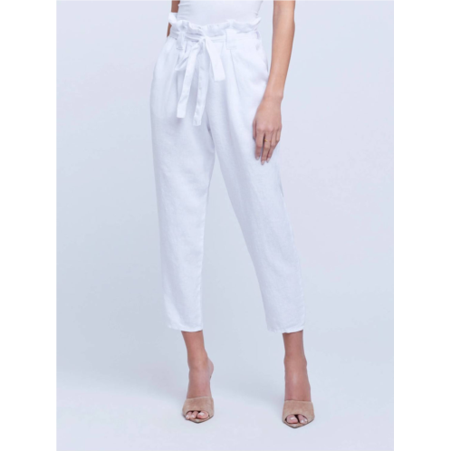 A straightleg pant that workes season after season. Dress these up with your favorite blouse or keep it casual with your go-to tee.Pearly white linen with a waist-defining paperbag silhouette. Belt loops. Optional belt. Four pocket styling. Zip fly and button closure. Rise - 12' Inseam - 25'. Model is 5'10' and wearing size 26. Machine wash cold.