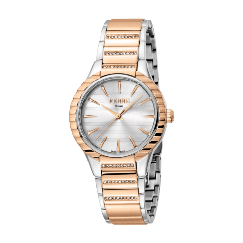 [US] Ferre Milano ladies silver dial ss mb.middle links in rg. watch