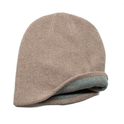 11' reversible slouchy HAT WITH ONE SIDE IN HONEYCOMB STITCH AND THE OTHER SIDE IN TWEED DESIGN IN CONTRAST COLOR-11'-100% CASHMERE-100% CASHMERE