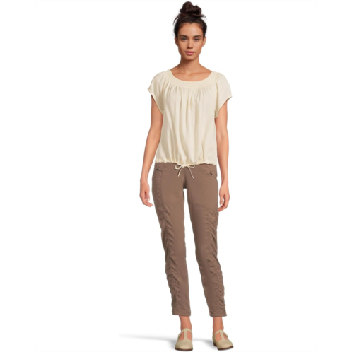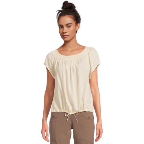 - The prAna Laguna Heights Top, your go-to piece for sunshine-ready style. Designed as a short-sleeve smocked cami, this top redefines casual cool with a neckline that can be worn on or off the shoulder, giving you two looks in one. The smocked detailing adds a feminine touch, while the adjustable drawstring waistband ensures a flattering silhouette that moves with you. With its pull-on design, dressing up or down is as easy as it gets. Finished with the subtle prAna logo embroidery on the left hem, it carries a hint of understated branding. Crafted for comfort and everyday wear, the standard fit keeps things relaxed yet polished.