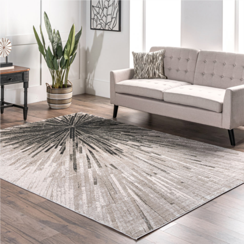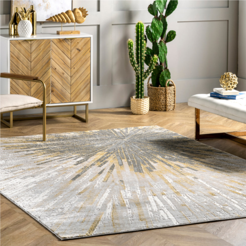 This abstract design will light up any room like a firework. Machine-made from silky soft synthetic materials, this rug will fit in perfectly with contemporary decor.