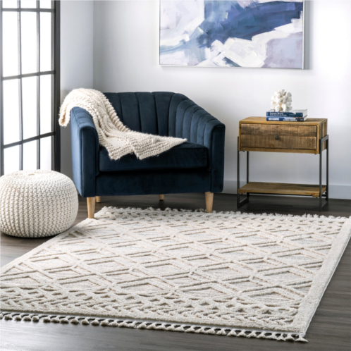 [US] NuLOOM ansley soft lattice textured tassel area rug