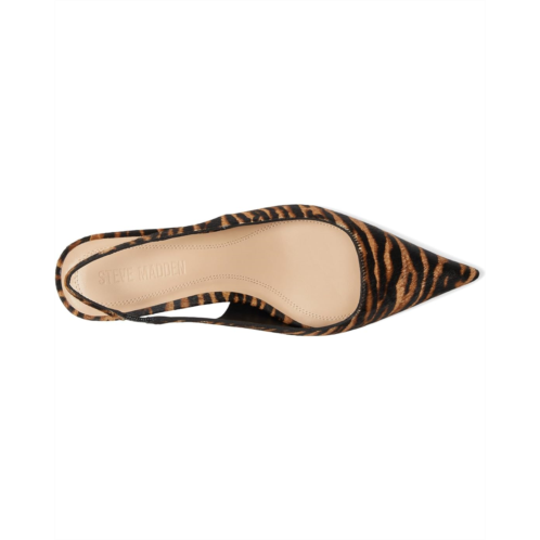 Elevate your style with the Steve Madden Kittie Pump. This sleek pump features a kitten heel and pointed-toe design, giving you a sophisticated look. The slingback heel adds comfort and versatility to your wardrobe. The slip-on style pumps are designed with a synthetic upper, faux leather lining, and a leather sock insole. Perfect for any occasion, this shoe is a must-have for any fashion-forward individual.