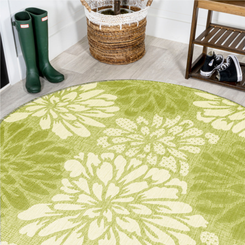 [US] JONATHAN Y zinnia modern floral textured weave indoor/outdoor green/cream round area rug