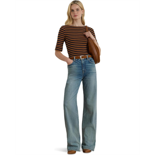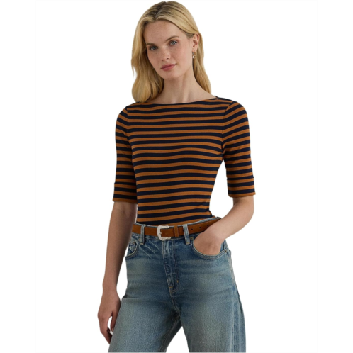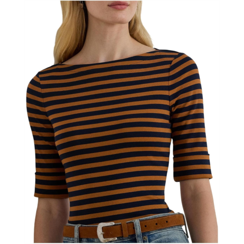 [US] POLO Ralph Lauren Womens Lauren Ralph Lauren Petite Striped Stretch Cotton Boatneck Tee