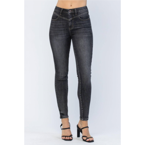 [US] Judy Blue high waist front yoke skinny jeans in black wash