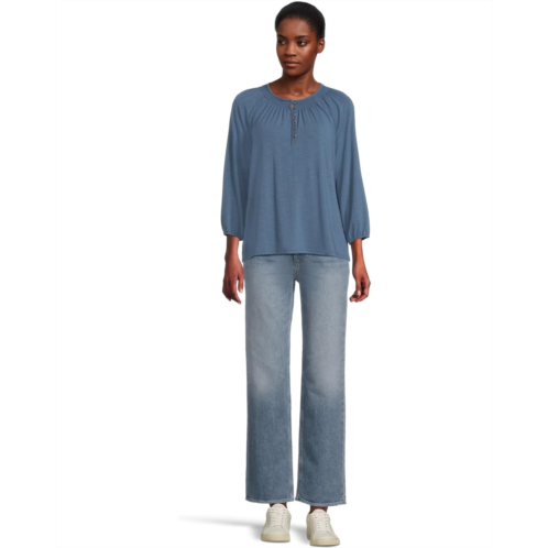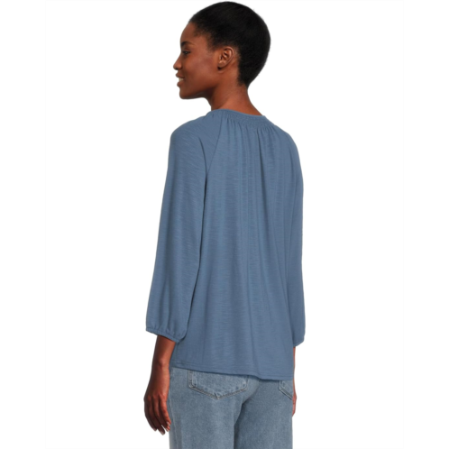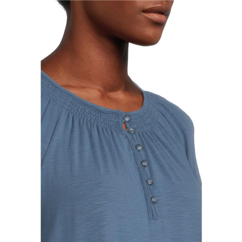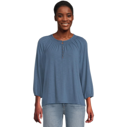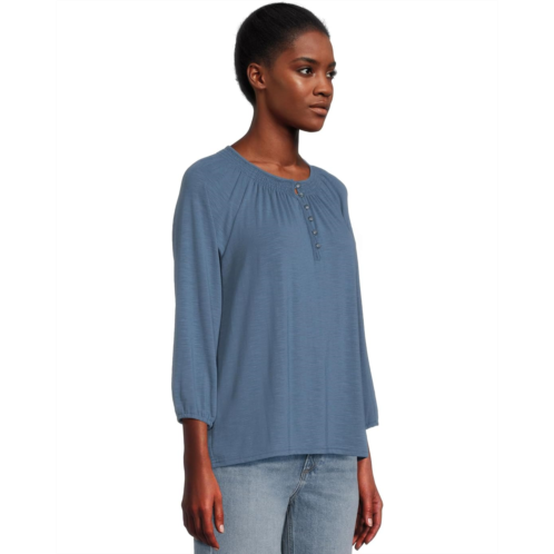 - Tees are essential to every wardrobe, but it's ones like L.L.Bean Camden Hills Tee Three-Quarter-Sleeve that add so much more to your style. It is elevated with subtle texture, a soft, beautiful drape and flattering details for wherever your day takes you. The relaxed fit sits farthest from the body and falls at the hip. The Henley splitneck comes with button closures and smocking accents. Three-quarter-length raglan sleeves with elasticized cuffs and a standard-length high-low hem complete the look.