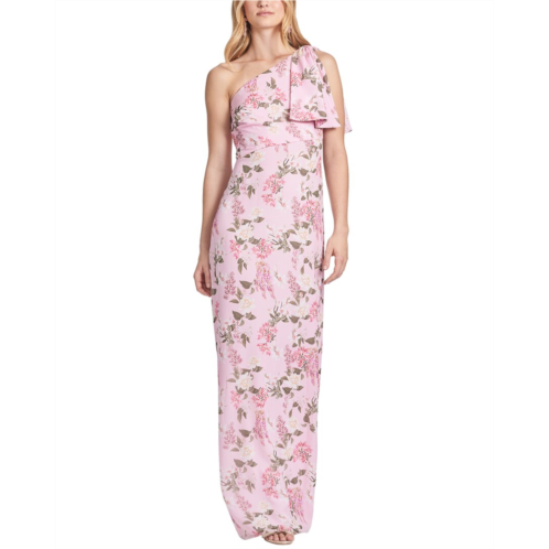 Elevate your evening look with the Sachin & Babi Chelsea Gown in Pink Pearl Wisteria. This stunning gown is approximately 60 inches from shoulder to hem and features a cut on bias silhouette with an asymmetric seam at the waist. The hand-tucked, stitched-on collapsed bow adds an elegant touch to this printed chiffon gown. It is fully lined with 100% polyester and has a side zipper closure for easy wear. Dry clean only. Imported.