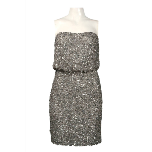A short and breezy dress for those warmer days.Turn heads in the Adrianna Papell Strapless Blouson Sequin Dress, a stunning silhouette in a sophisticated grey hue. This strapless mini dress boasts a solid sequin design with a sweetheart neckline, fully lined for comfort. Crafted entirely from polyester, it offers elegance without the need for closures. Made for special occasions, this dress skips pockets to maintain its sleek profile.