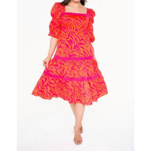 A midi dress so versatile, your options for wearing it are endless.Introducing the Mia Dress by Alden Adair, a captivating blend of wild elegance and effortless style. This mid-length, elbow sleeve dress embraces a striking wildcat pattern in an A-line silhouette, perfect for any occasion. The squareneck neckline adds a touch of sophistication to this piece, while the absence of a closure ensures seamless comfort. Enjoy this dress made for the modern woman, offering both grace and ease. Machine wash cold with like colors.