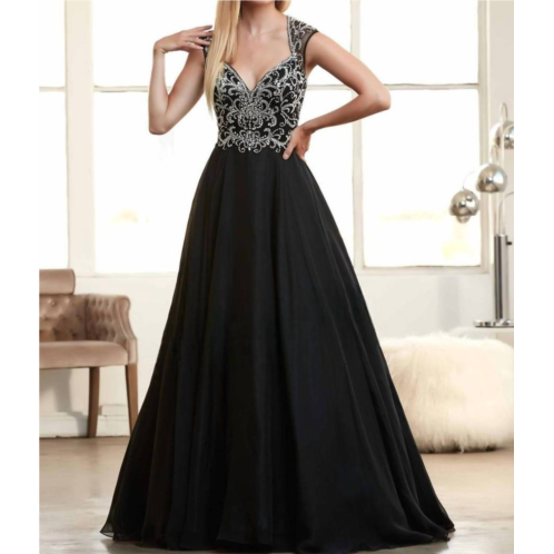 [US] MAC DUGGAL cap sleeves beaded ball gown in black